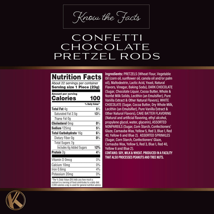 Assorted Dark Milk Chocolate Covered Pretzel Rods in Confetti Tower