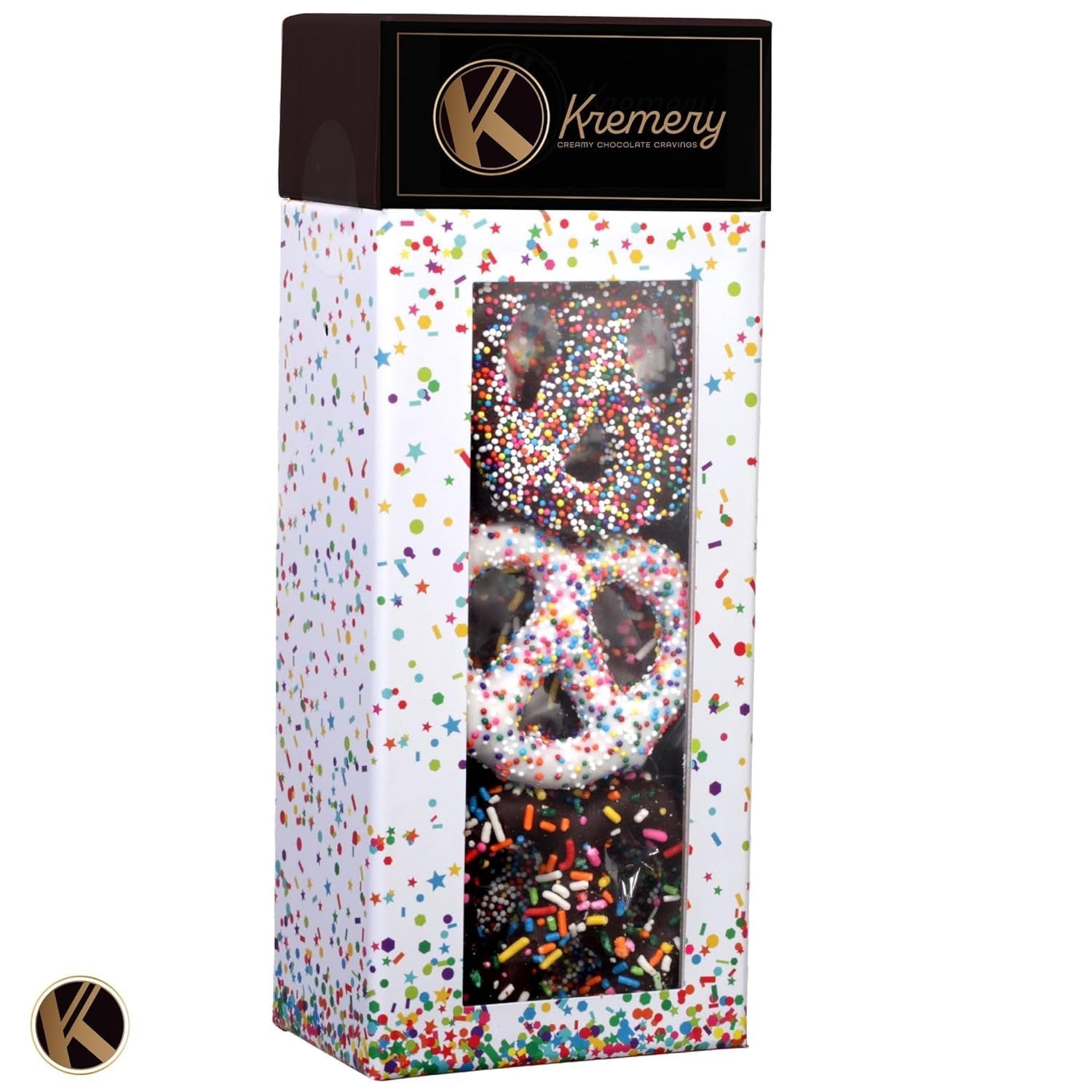 Dark Milk Chocolate Covered Pretzel Twists in Confetti Tower (12 Count)