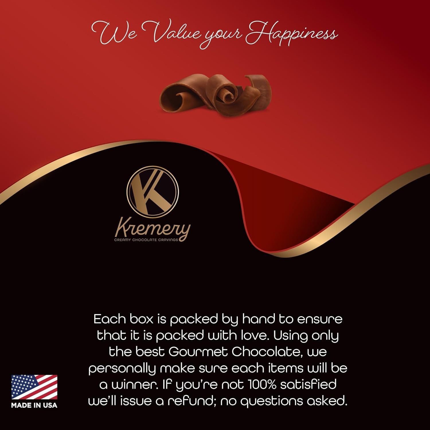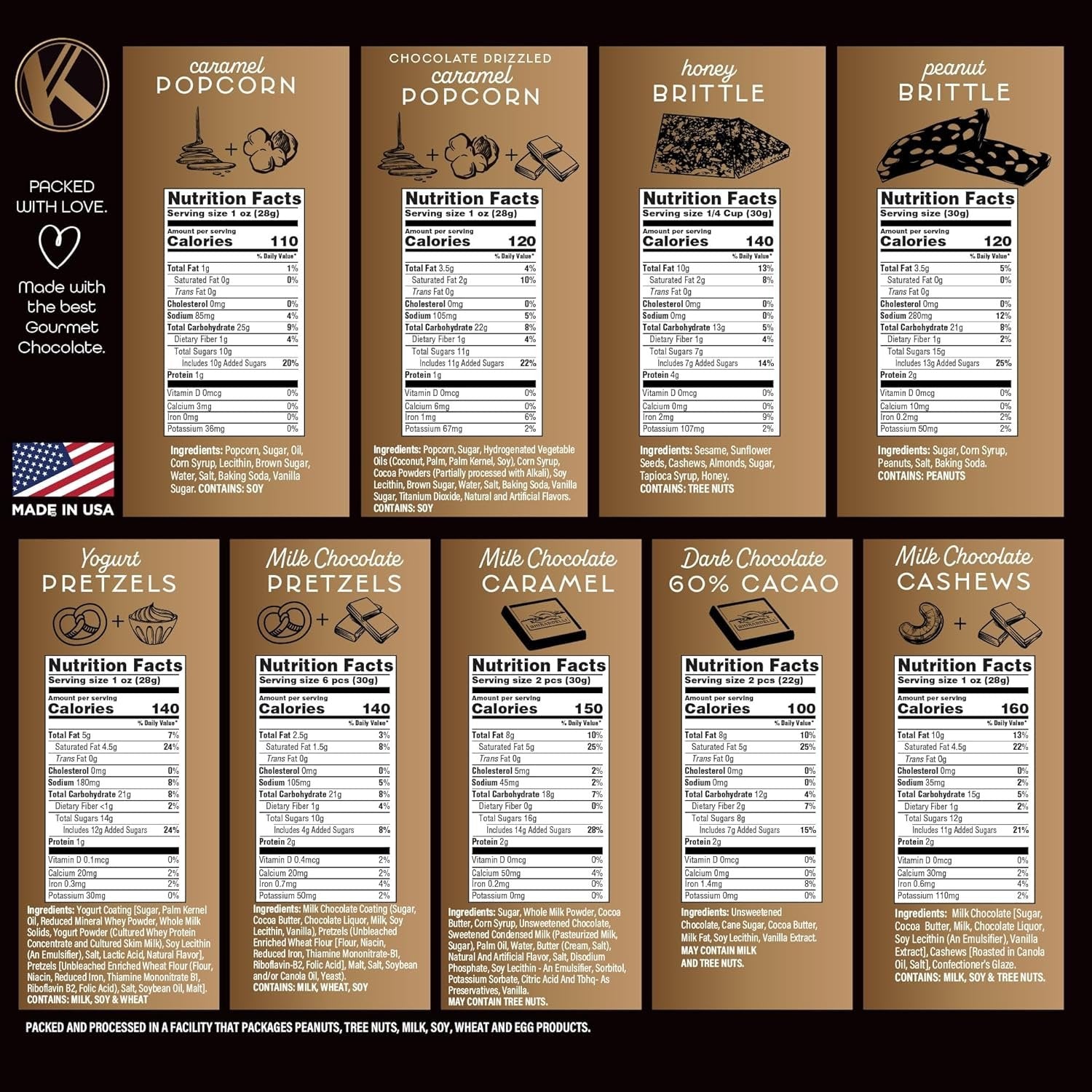 Each box is packed by hand to ensure that it is packed with love. Using only the best Kosher Certified Gourmet Chocolate, we personally make sure each item will be a winner.